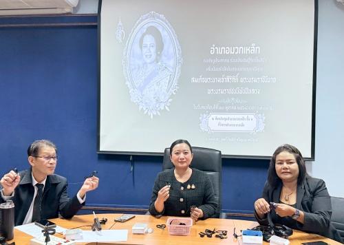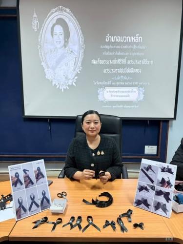 นางสาวอ้อยทิพย์ ปานสอาด นายอำเภอมวกเหล็ก พร้อมด้วย นางโสภิดา รังษา พัฒนาการอำเภอมวกเหล็ก,หัวหน้าส่วนราชการ,ปลัดอำเภอ,เจ้าหน้าที่พัฒนาชุมชน,คณะกรรมการพัฒนาสตรีอำเภอมวกเหล็ก(กพสอ.) ตลอดจนถึงประชาชนในพื้นที่อำเภอมวกเหล็กจัดกิจกรรมประดิษฐ์เข็มกลัดริบบิ้นสีดำ เพื่อแจกจ่ายให้แก่ประชาชนนำติดเสื้อผ้า ถวายความอาลัย ซึ่งจะได้นำไปแจกจ่ายให้กับพี่น้องประชาชนในการร่วมพิธีบำเพ็ญกุศล สวดพระอภิธรรม อุทิศถวายพระราชกุศล แด่สมเด็จพระนางเจ้าสิริกิต์ พระบรมราชินีนาถ พระบรมราชชนชีพันปีหลวง สัตตมวาร (7วัน) ในวันที่ 30 ตุลาคม 2568 ณ วัดมวกเหล็กนอก หมู่ที่3 ตำบลมวกเหล็ก อำเภอมวกเหล็ก จังหวัดสระบุรี